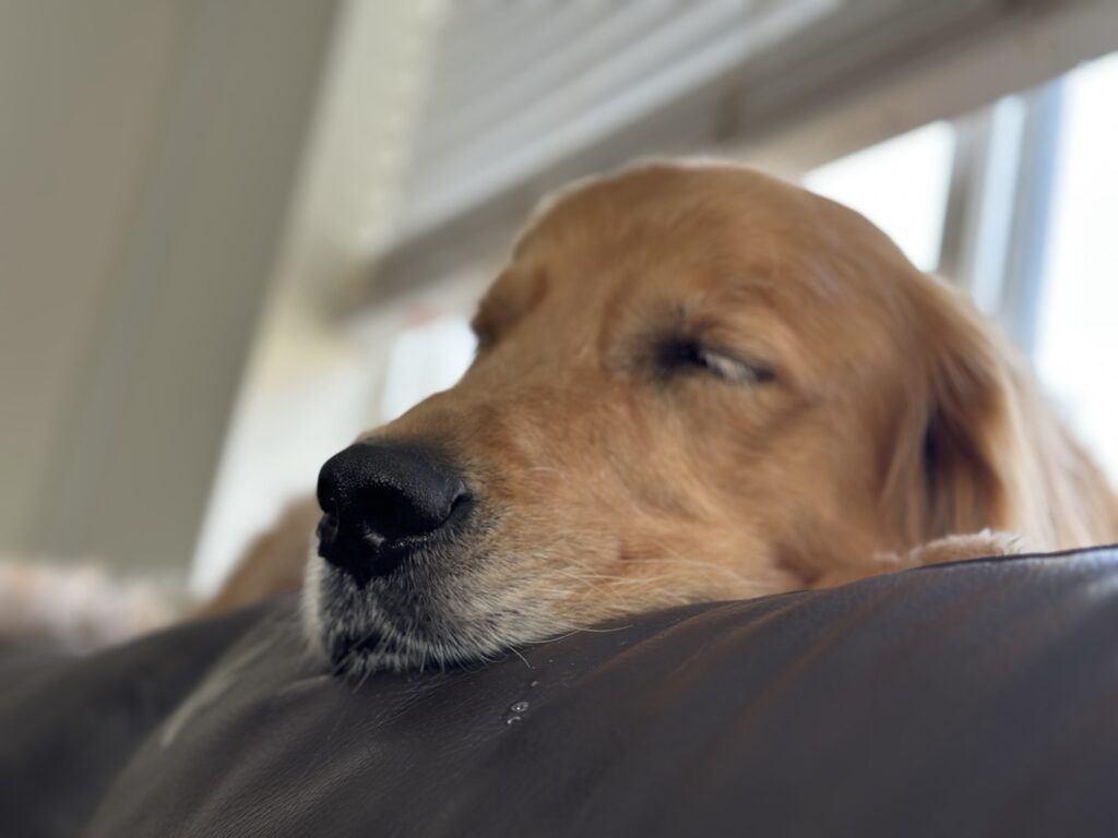The good boy is tired, so time for a nap. My dog too.
